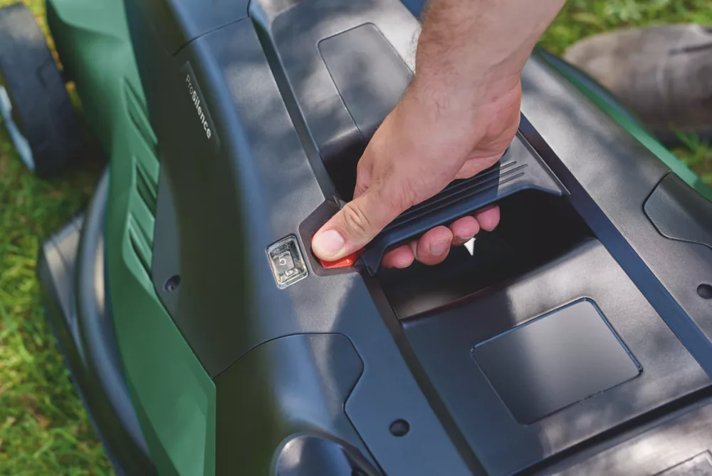 Offers excellent results and quiet mowing with acoustically enhanced design and ProSilence feature. AdvancedRotak offers 7 cutting heights, ranging from 25 to 80mm, with simple button operation. LeafCollect blade cuts grass and can also be used to collect leaves.