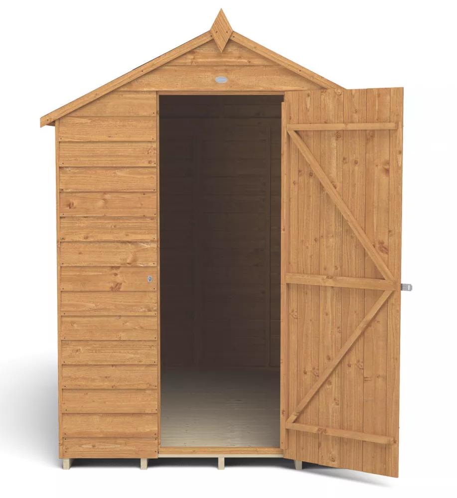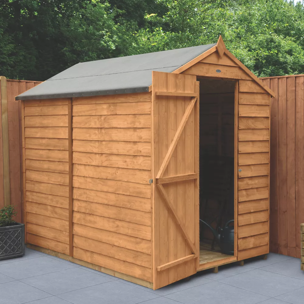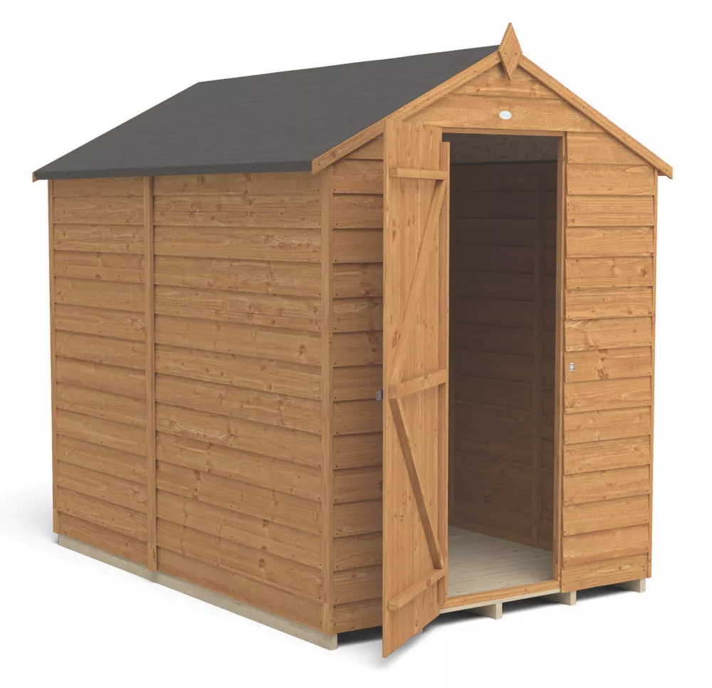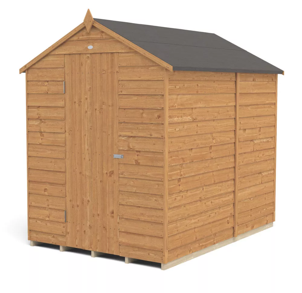 An excellent option for gardens where space is limited. Traditional apex roof, smooth-planed finial and decorative barge boards. High apex for plenty of headroom inside. Design features small sections, making it easier to handle and allows quick and easy assembly. The door is braced with strong double ‘Z’ framing, has secure hidden hinges and is fitted with a hasp and staple latch that can be used with a padlock. The door can be hinged either side of the opening to suit the garden. Pressure-treated solid timber floor allows for the storage of heavier items like lawnmowers or bags of compost. The lack of windows help to keep belongings hidden. Constructed using square-cut boards that overlap to allow natural movement of the timber in changing weather conditions and aid water run-off. The roof is made from hardwearing sheet material, finished with black sand felt. Manufactured in the UK and supplied with all fixtures, fittings and felt needed to build.
