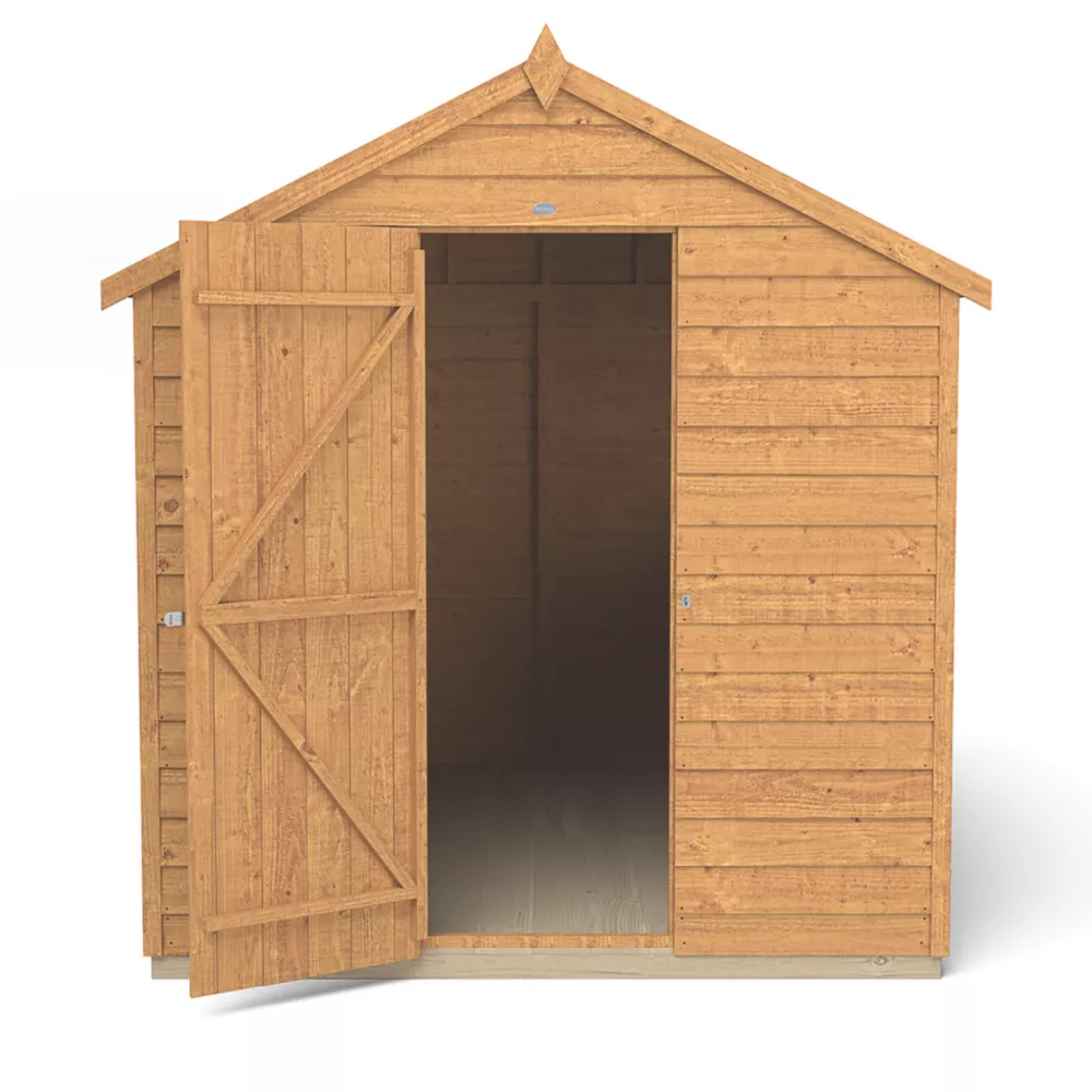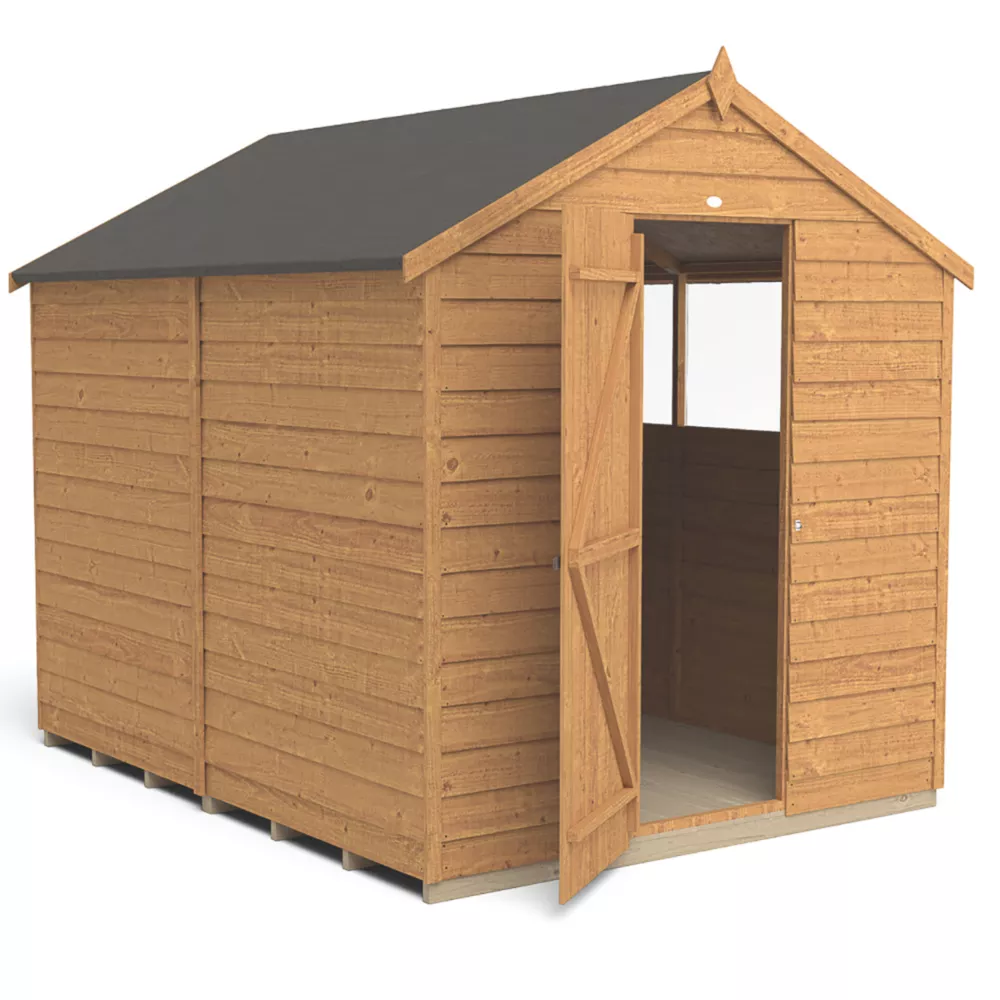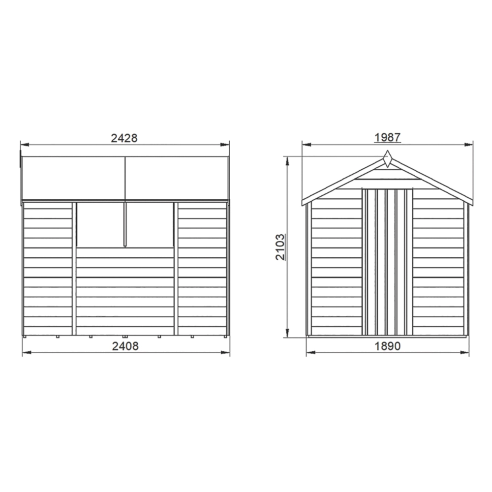 A secure storage solution that keeps belongings safe and out of sight. Traditional apex roof, smooth-planed finial and decorative barge boards. Its large size and generous headroom makes it a practical solution for garden storage. Design features small sections, making it easier to handle and easy to assemble. The 2 fixed windows are made from shatterproof PET glazing, which will not become yellow or brittle over time. The door is braced with strong double ‘Z’ framing, has secure hidden hinges and is fitted with a hasp and staple latch that can be used with a padlock. It can be hinged either side of the opening to suit the garden. The straight-cut boards overlap, allowing natural movement of the timber so it can adapt to the changing weather conditions. The roof is made from hardwearing sheet material, finished with black sand felt. Pressure-treated solid timber floor allows for the storage of heavier items like lawnmowers or bags of compost. Manufactured in the UK and supplied with all fixtures, fittings and felt needed to build.