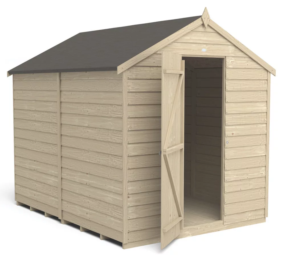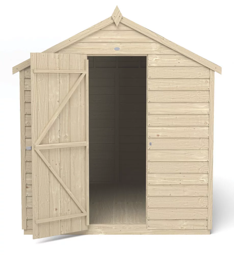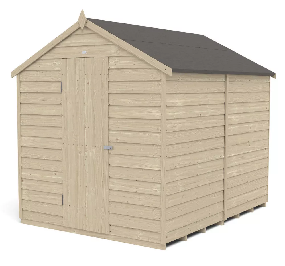 A secure storage solution that keeps belongings safe and out of sight. Traditional apex roof, smooth-planed finial and decorative barge boards. Its large size and generous headroom makes it a practical solution for garden storage. Design features small sections, making it easier to handle and easy to assemble. This building is designed with security in mind, with its main feature being the lack of windows to make sure belongings are not on show. The door is braced with strong double ‘Z’ framing, has secure hidden hinges and is fitted with a hasp and staple latch that can be used with a padlock. It can be hinged either side of the opening to suit the garden. The straight-cut boards overlap, allowing natural movement of the timber so it can adapt to the changing weather conditions. The roof is made from hardwearing sheet material, finished with black sand felt. Pressure-treated solid timber floor allows for the storage of heavier items like lawnmowers or bags of compost. Manufactured in the UK and supplied with all fixtures, fittings and felt needed to build.