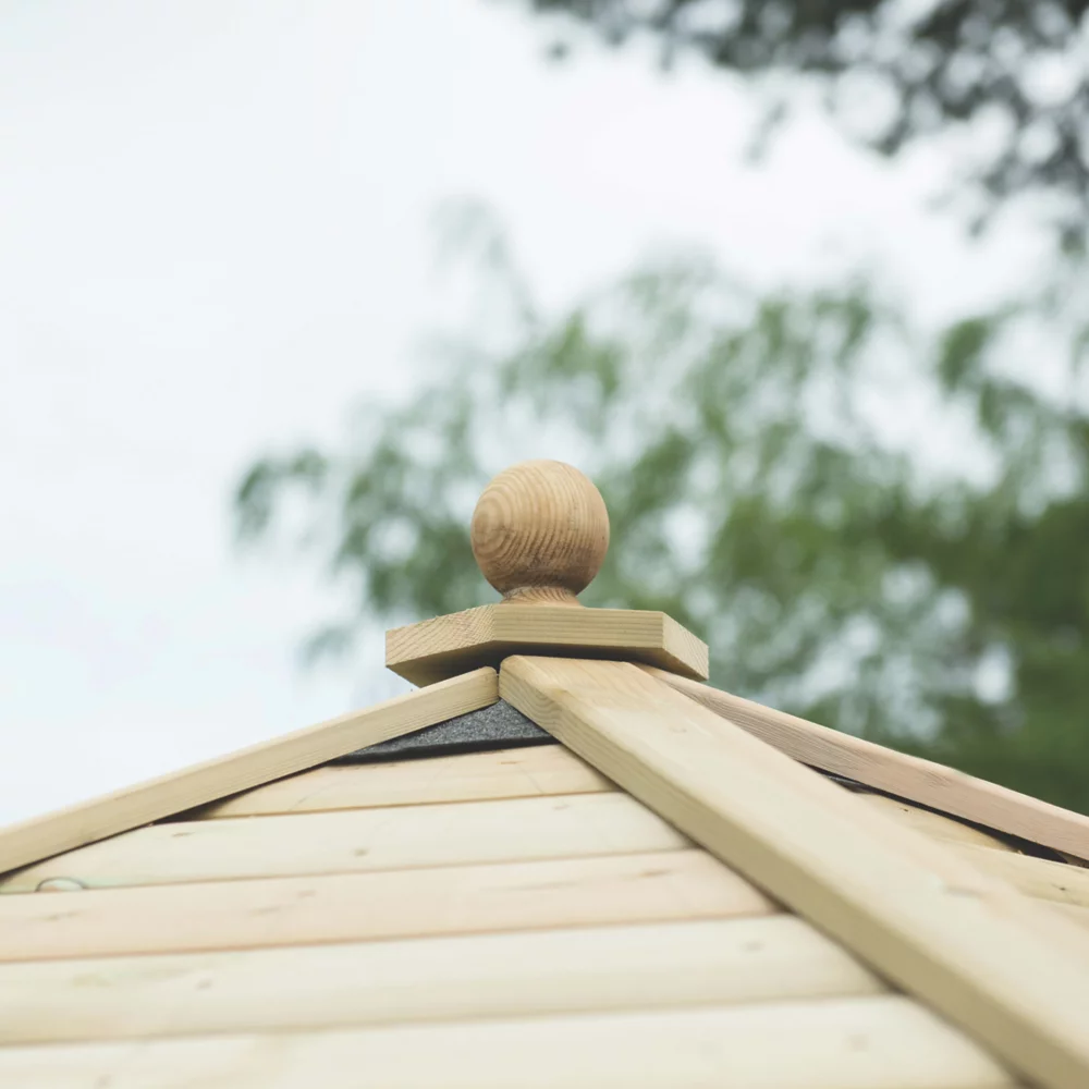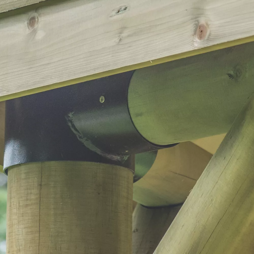 Pressure-treated, kiln-dried Radiata Pine softwood, formed into a log lap roof structure and placed on top of a waterproof Tricoya lining for a simple, elegant and cost-effective finish. Substantial uprights are secured to the base. Steel brackets secure them to the perimeter frame for high strength and rigidity. Installed by a professional team.