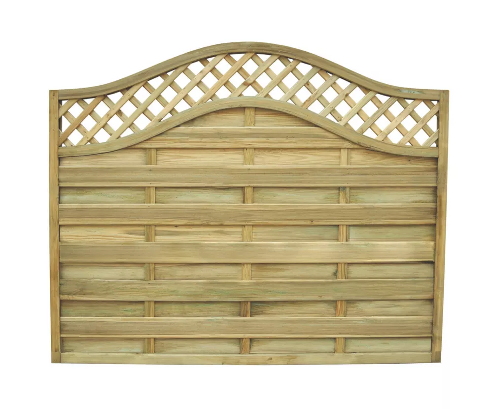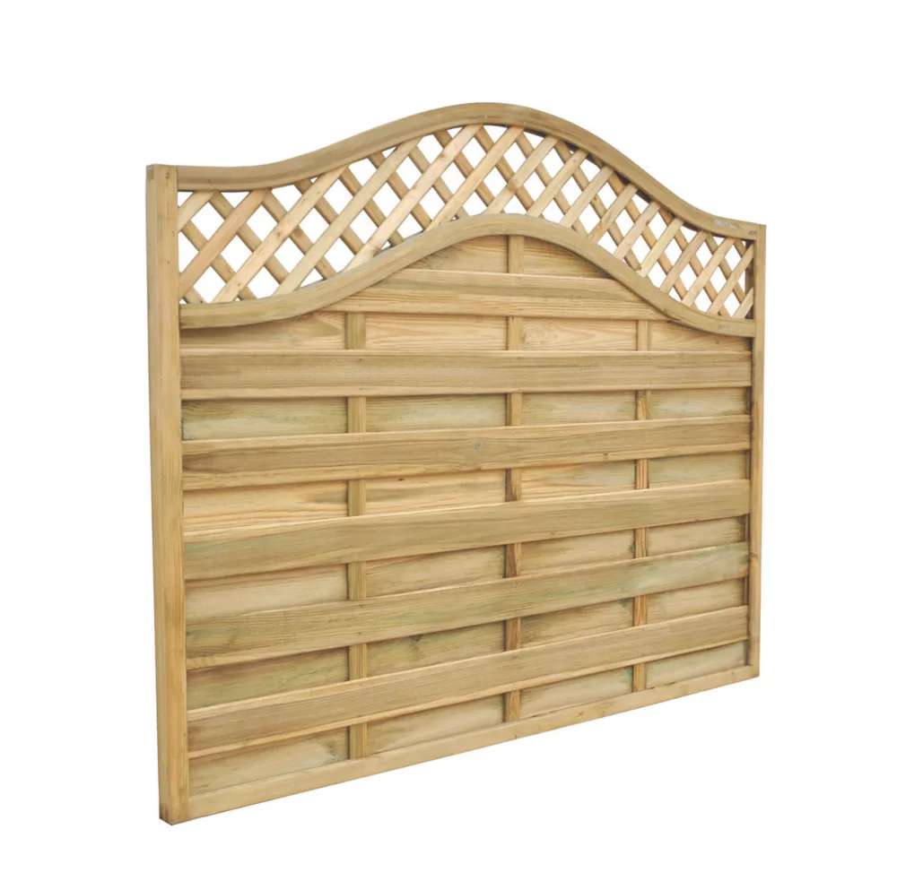 Softwood. Stylish and decorative fence panels with a curved trellis design.
