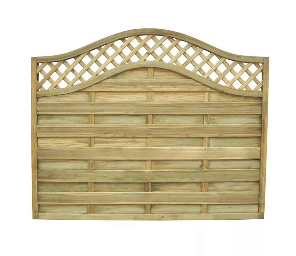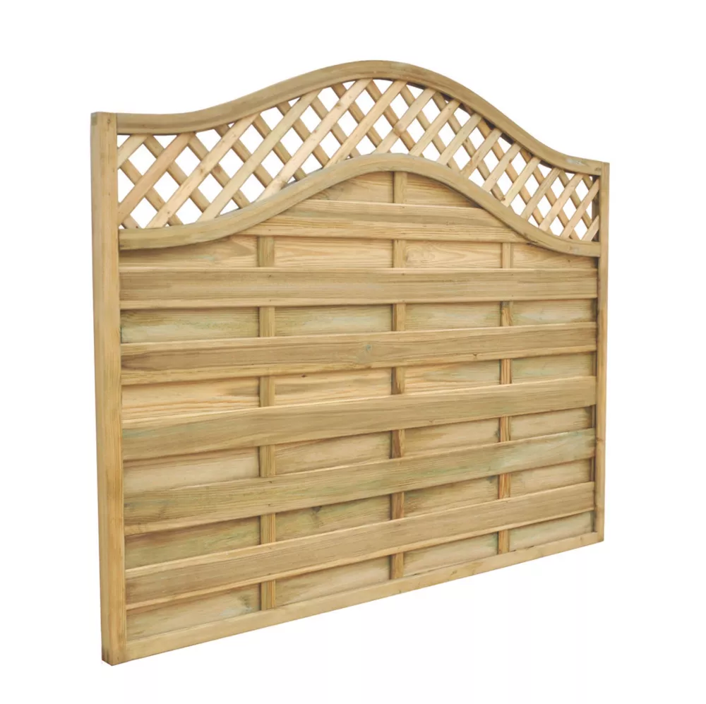 Softwood. Stylish and decorative fence panels with a curved trellis design.