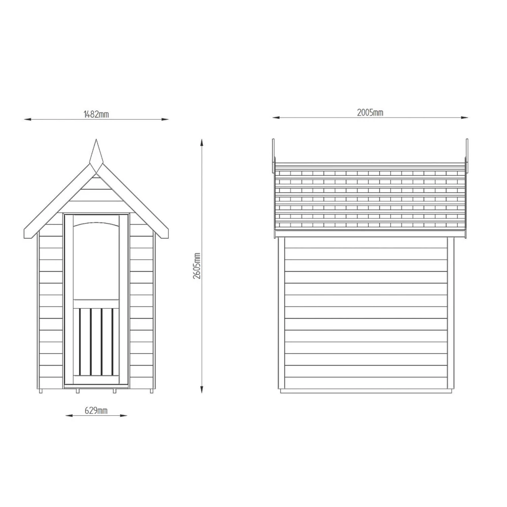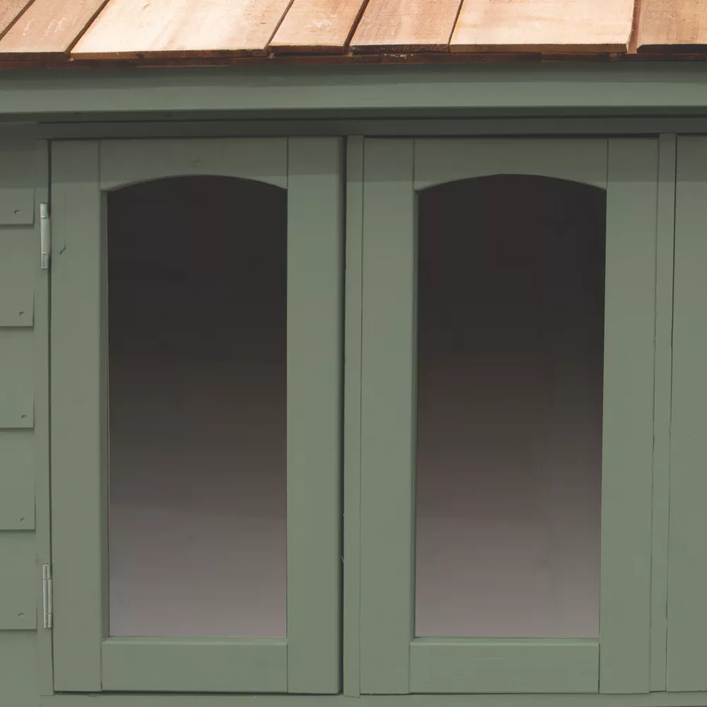 An exceptionally high quality workspace ideal for storing tools, potting seeds or for DIY. Provides a practical space as well as making a beautiful garden feature. Hand-made to order and assembled on-site from the finest materials. Kiln-dried, smooth-planed redwood timber boards are mounted to a substantial framework, in an overlap construction (with 20mm wall thickness at the overlaps), to give a traditional and attractive featheredge appearance. The steeply pitched roof gives the building a distinct style and offers plenty of headroom. Shelves can be readily inserted at the back of the shed, making full use of the roof space as a place for storage. The floor and roof use interlocking, smooth-planed and pressure-treated boards and the floor is mounted on pressure-treated bearers to protect it from ground contact. The roof is finished with high quality Canadian red cedar shingles that over time will develop to a subtle grey. The 2 opening windows are glazed with 4mm toughened glass.