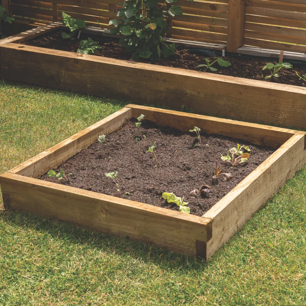 Quick and easy way of establishing a useful bed for growing a variety of vegetables or other plants in a small space. Notched ends for easy assembly with attractive half-lap joints at each corner. Line planter with membrane before adding soil to grow food produce.