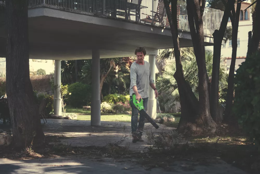 Lightweight cordless blower with axial fan. Can manage soggy leaves with ease. Suitable for one-handed motor control with left or right hand due to its multifunctional and ergonomic handle. Cruise control throttle to set and maintain speed. Compatible with 40V Greenworks battery (available separately).