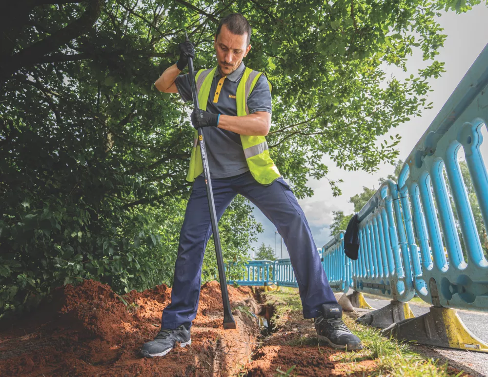 Hand-forged, heat treated and hardened, heavy-duty digging bar. Featuring a point tip for breaking up hard ground and concrete and a chisel end for levering heavy objects such as boulders, paving slabs and broken concrete. Powder-coated with polished tips for greater corrosion resistance.