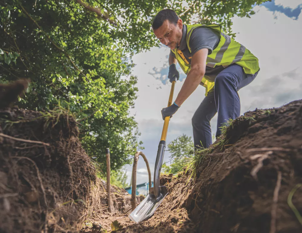For laying pipe or cable. Fibreglass handle.