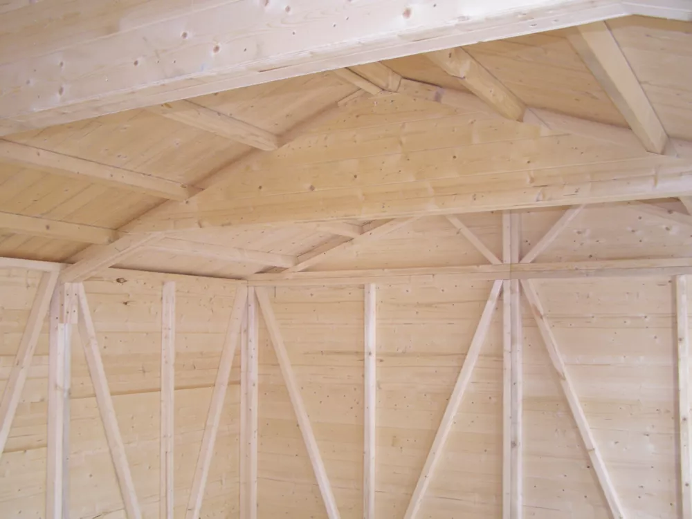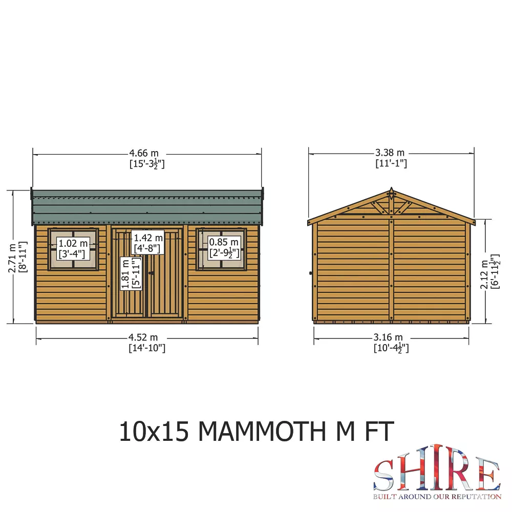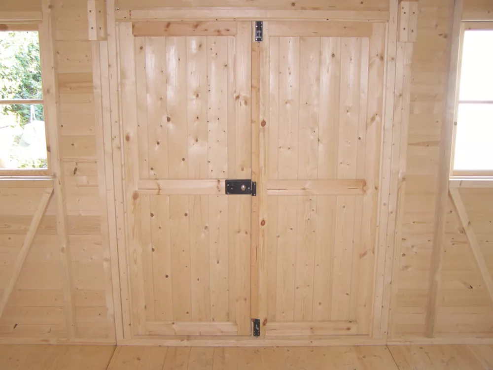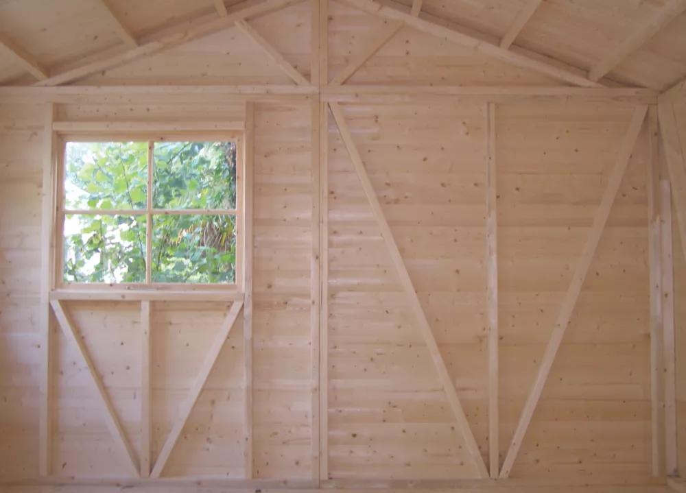 Large, sturdy workshop with high eaves, green felted tongue and groove roof and strengthened 14.5mm tongue and groove floor. Includes assembly.