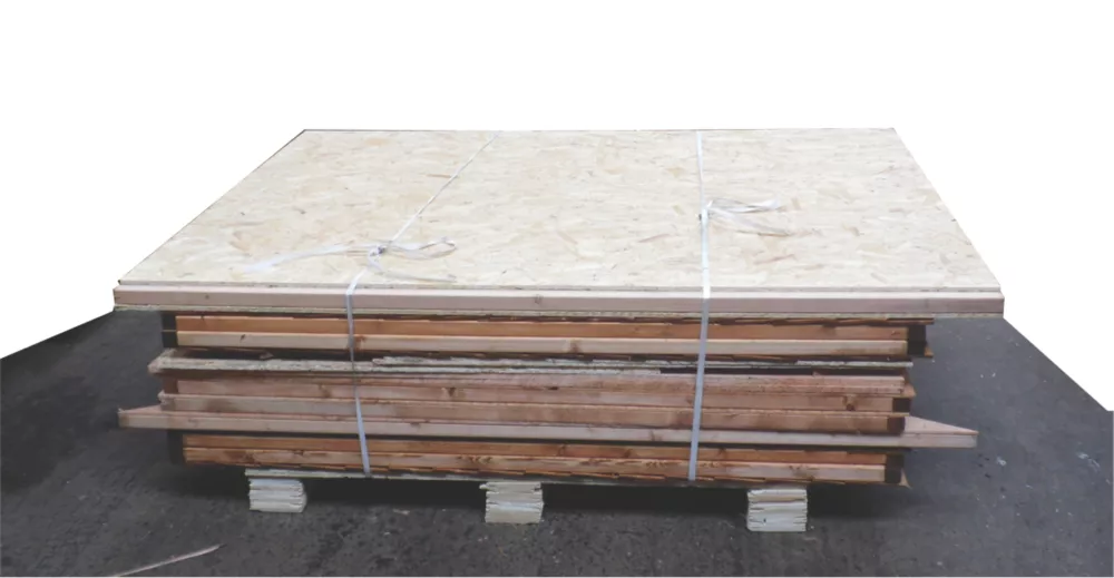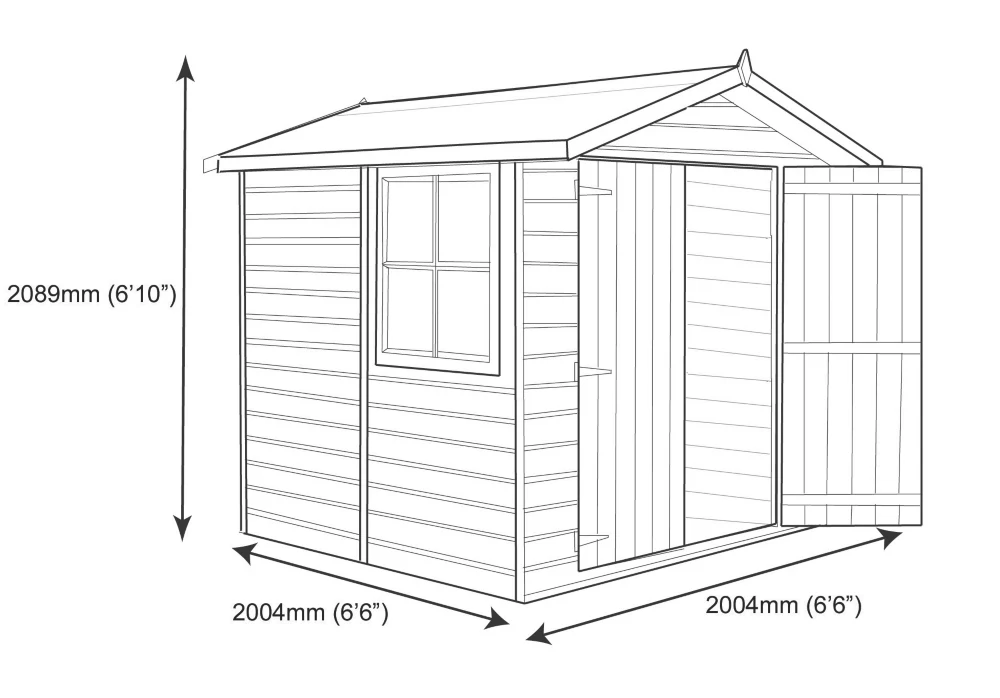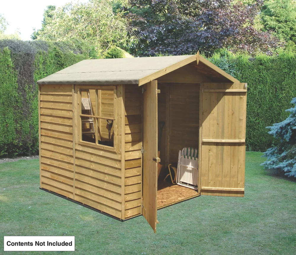 Overlap shed, pressure-treated timber with solid sheet roof and floor. With wide double door opening.