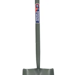 Heavy duty forged carbon steel with a grey hammer powder-coating. Chops through roots and root systems with ease