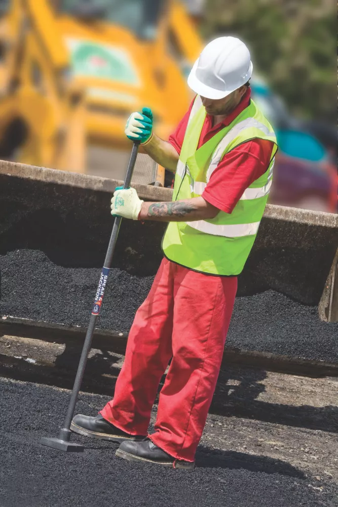 Drop-forged steel head, tubular steel handle and a non-slip rubber grip. Designed for working with tarmac and asphalt. 4.5kg head weight.