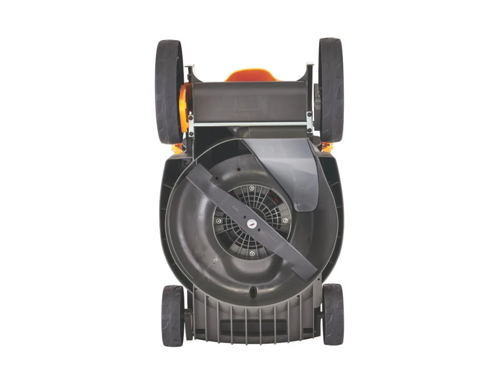 Compact and lightweight with powerful 860W motor and rustproof deck. Ideal for small lawns up to 350sqm. Features 38cm cutting width, adjustable handlebars with cam-locks to fold for storage and mulching plug for adding valuable nutrients back into the soil. Choose collect, mulch or rear-discharge for grass cuttings. Design for easy handling and manoeuvrability and supplied with battery and charger.